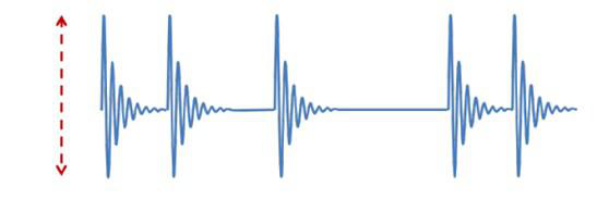 強(qiáng)磁高頻除垢儀所產(chǎn)生電磁波的形式為間隔重復(fù)的高頻震蕩,如下圖