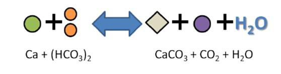 該方程式同時也說明,水和二氧化碳能夠共同溶解水垢。